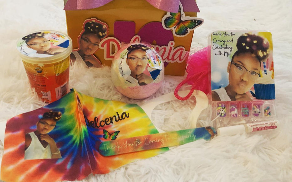 Each guest gets a sleep mask or drawstring backpack that matches the theme.